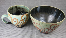 2 $54 noodle bowls mint/slate, runny/pinkish blueish